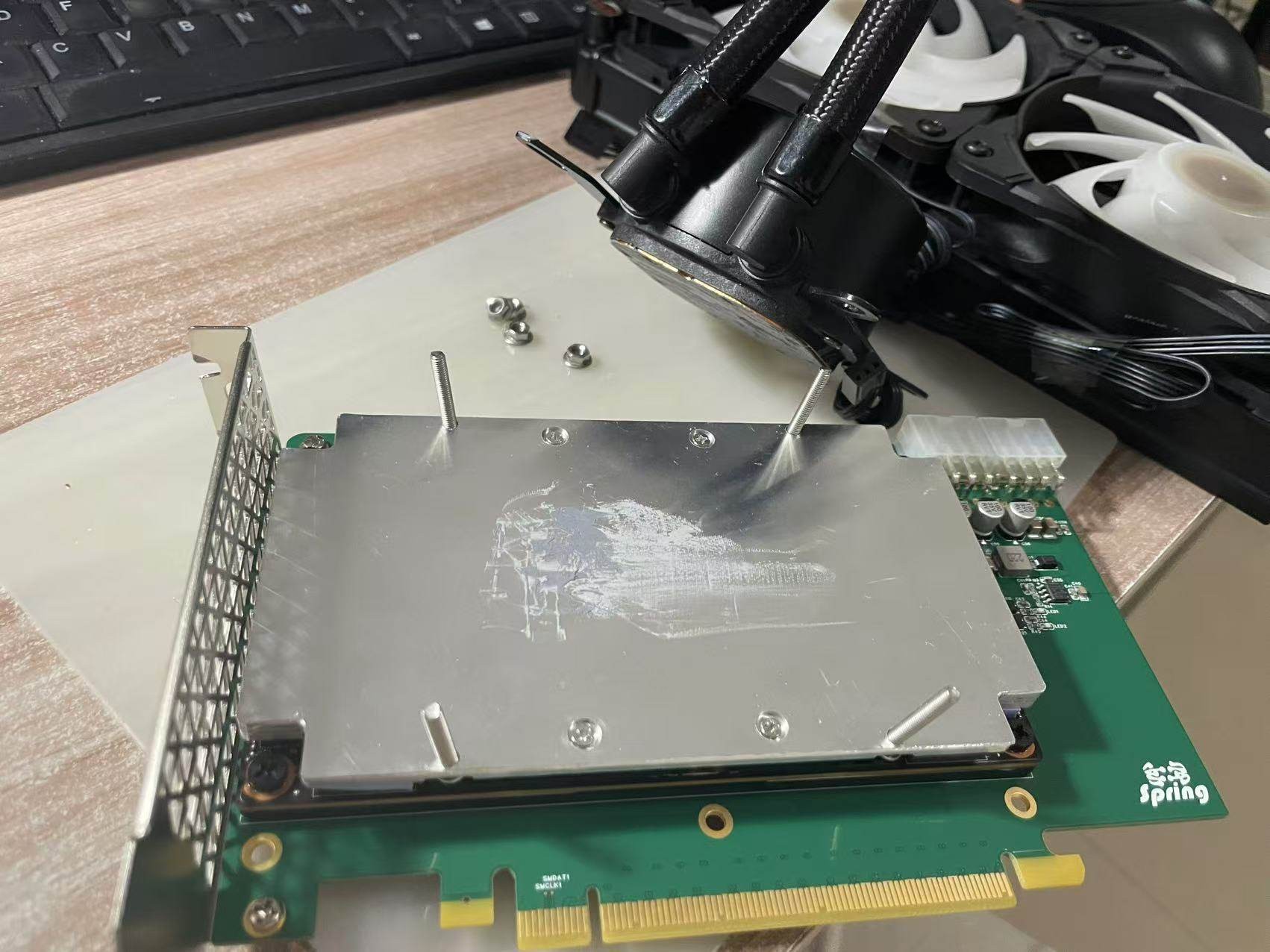 Apply a layer of silicone grease to the convex surface and cover the core directly. The water cooling head covers the Intel 115x platform hole position.